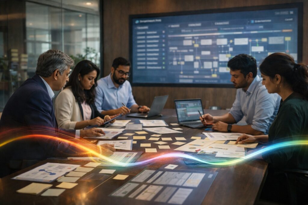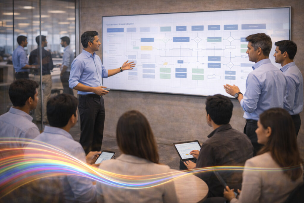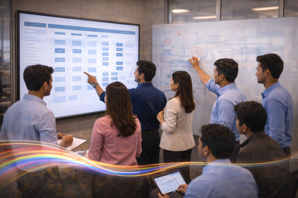 We help AI Transition Offices upgrade the enterprise operating system so intelligence can participate safely in work—while outcomes, trust, and governance improve together.